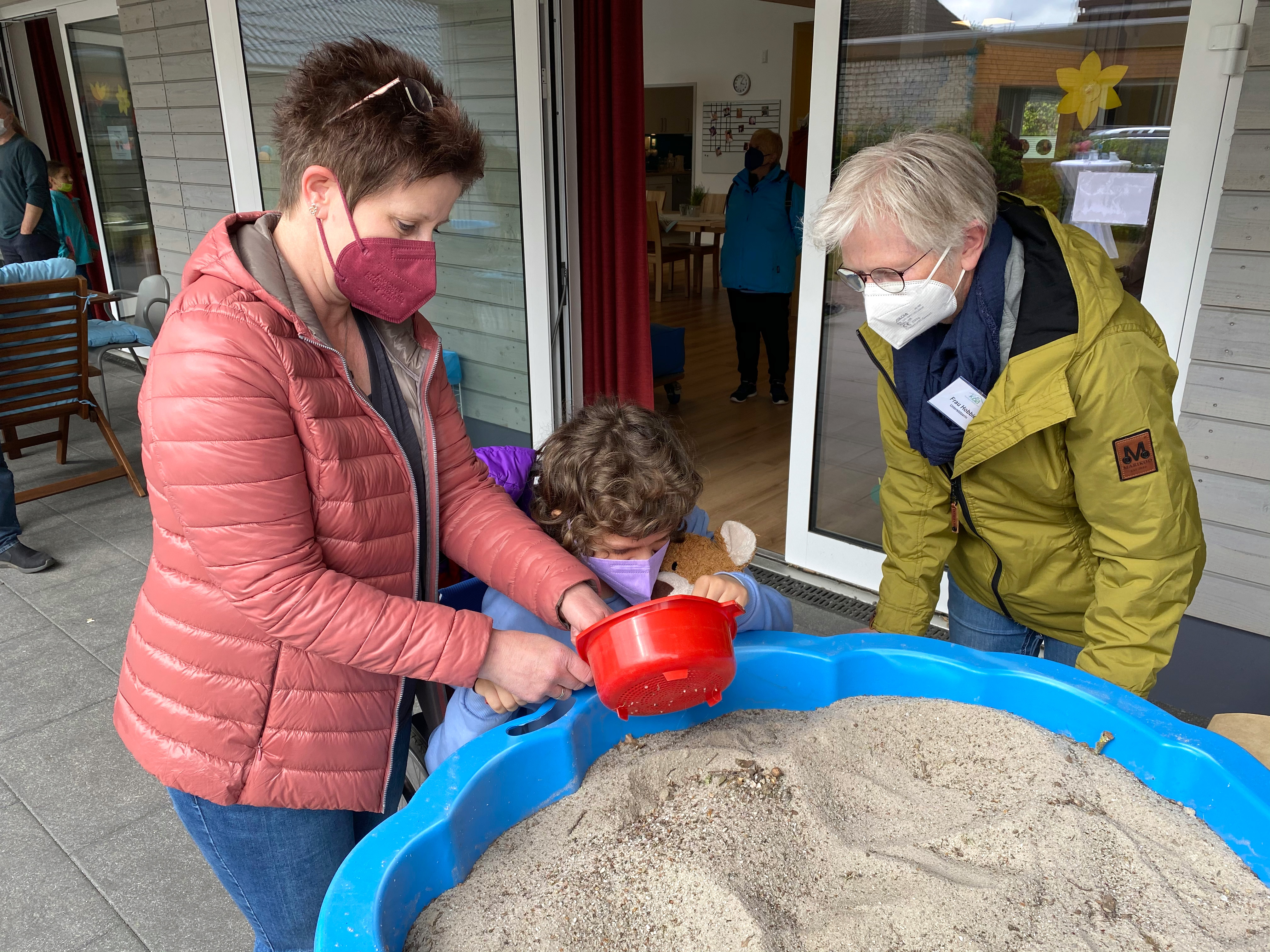 Oldenburg, 4.5.2022 - Vom 2. bis 8. Mai findet die Inklusionswoche in Oldenburg statt. Und auch das KIOLA-Haus beteiligte sich daran. Bei einem Tag der offenen Tür konnten alle Interessierte einen Blick in die Einrichtung am Dohlenweg 5 werfen. Bedingt durch die Corona-Pandemie war dies die erste Möglichkeit für die Öffentlichkeit, die Einrichtung der Kurzzeitpflege für Kinder und Jugendliche mit Beeinträchtigung kennen zu lernen. „Wir freuen uns das Nachbarn aus dem Stadtteil und interessierte Eltern und Multiplikatoren nun die Gelegenheit hatten, die Räumlichkeiten zu sehen und die Atmosphäre kennen zu lernen“, freut sich Einrichtungsleiterin Ute Dorczok. Gemeinsam mit Koordinatorin Anja Schröder und dem Team führte sie die Besucher durch das Haus. Eltern, die das Angebot bereits nutzen, berichteten gerne über ihre Erfahrungen mit dem KIOLA-Haus. Für die kleinen Besucher wurde unter anderem eine Edelsteinsuche angeboten.